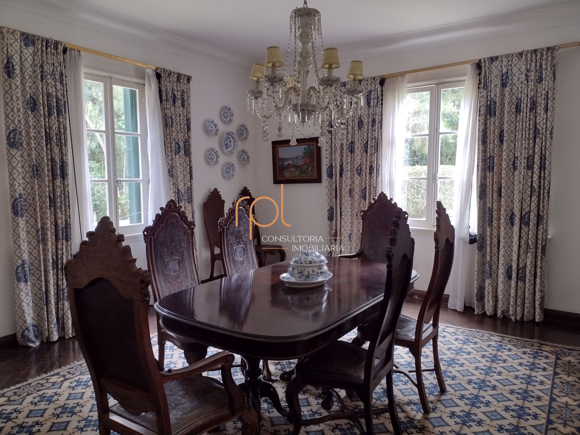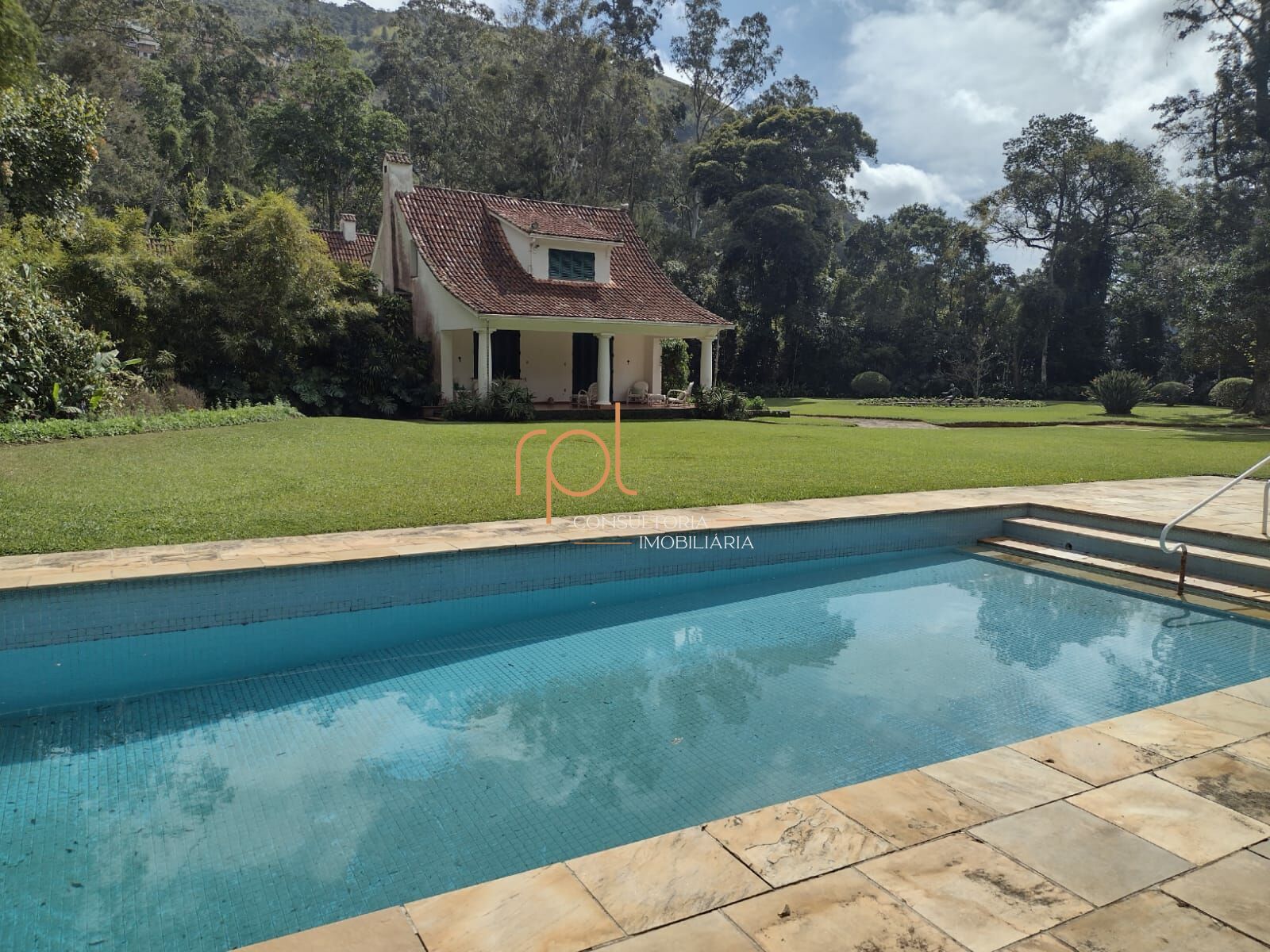 Linda casa em meio a muito verde, com hall de entrada, sala de estar com lareira, sala de jantar, varanda aberta, 4 quartos, sendo 2 suítes, banheiro, rouparia, cozinha com armários, copa, despensa e área de serviço. Amplo gramado, churrasqueira, piscina, apoio com banheiros e vestiário, sauna seca. Casa de hóspede, casa de caseiros, horta, árvores frutíferas, canil, garagem e pátio para estacionamento.