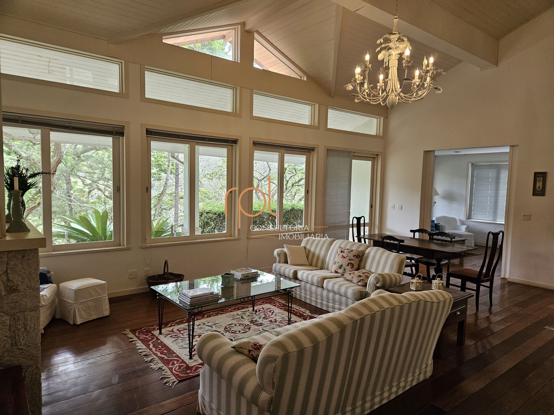 Casa em condomínio com lazer e fácil acesso. Hall de entrada, sala de estar com lareira e pé direito duplo, sala de jantar, home theater, escritório, lavabo, cozinha planejada, despensa, louceiro, área de serviço e lavanderia. 4 suítes, sendo 3 com closet e 1 com varanda, hall, sala de TV, rouparia e copa de apoio. Jardim, jacuzzi, campo de futebol e casa de hóspedes com 2 quartos, sala, cozinha e banheiro. Garagem coberta para 3 carros. Tudo isso em um terreno com 9500m².
