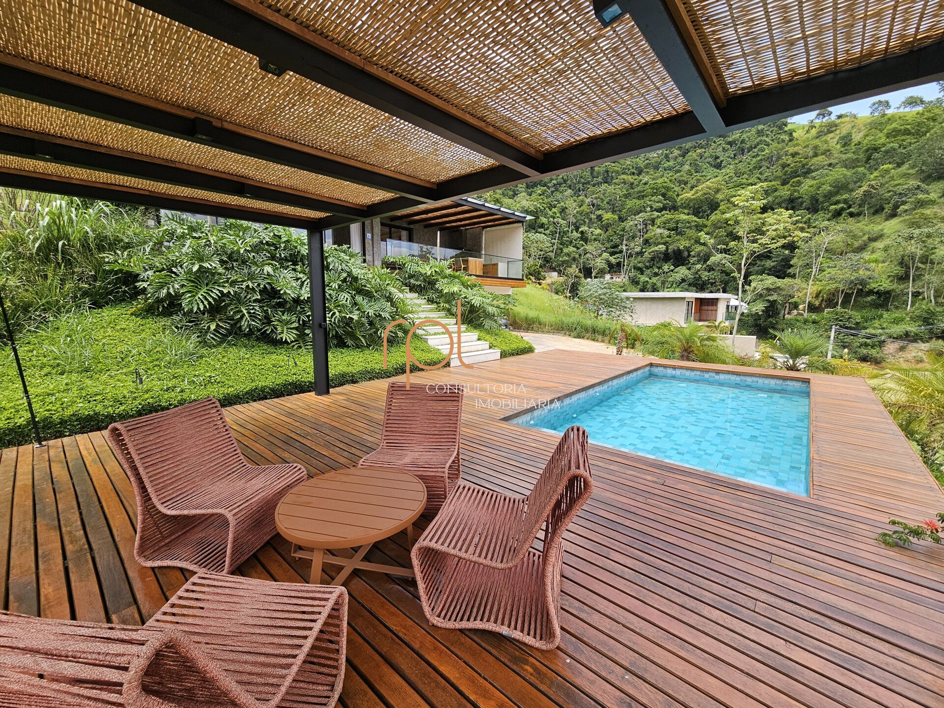 Deck com piscina e ducha. Linda vista!