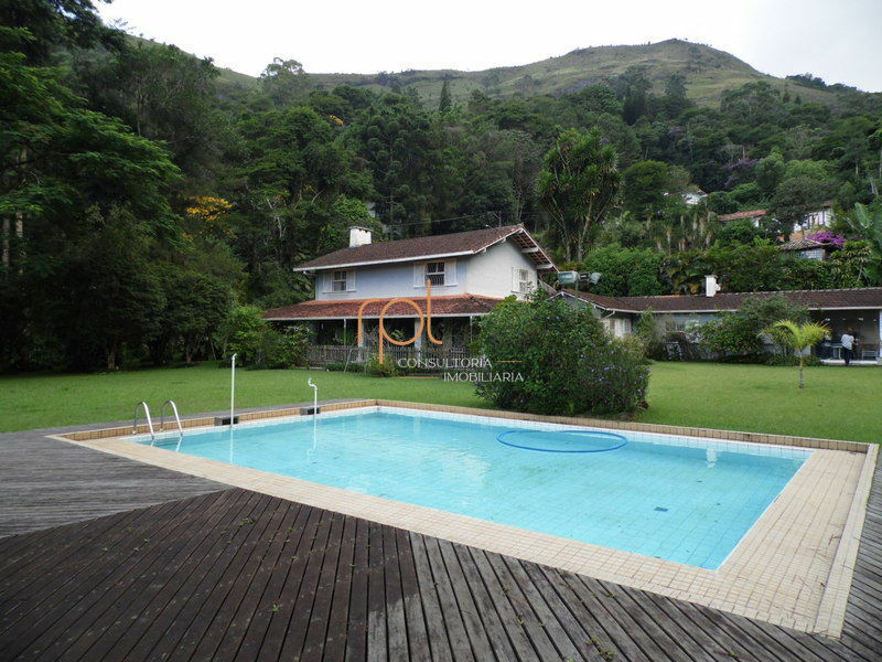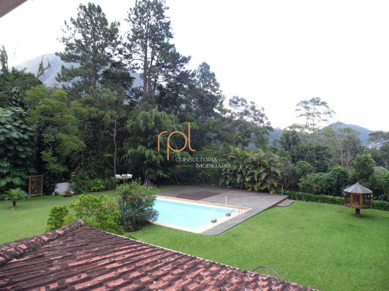 Casa composta de Hall de entrada, sala de estar, sala de jantar, sala de TV, lareira, varanda aberta, 7 quartos sendo duas suíte (1 com lareira), 03 banheiros sociais, copa/cozinha, louceiro, área de serviço, dependência de empregada e banheiro de serviço. Área de lazer composta de piscina, sauna seca e a vapor, churrasqueira, salão de jogos, jardim e gramado. Casa de caseiro, canil, garagem para 10 carros. Muito verde, ótima vista, muita privacidade.