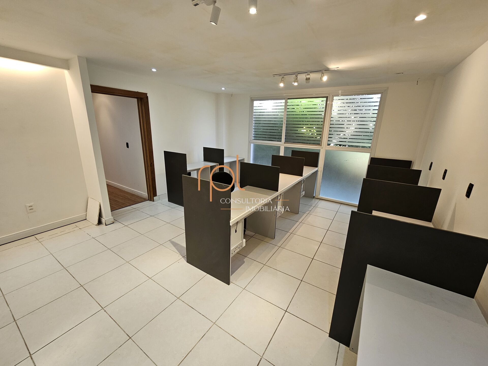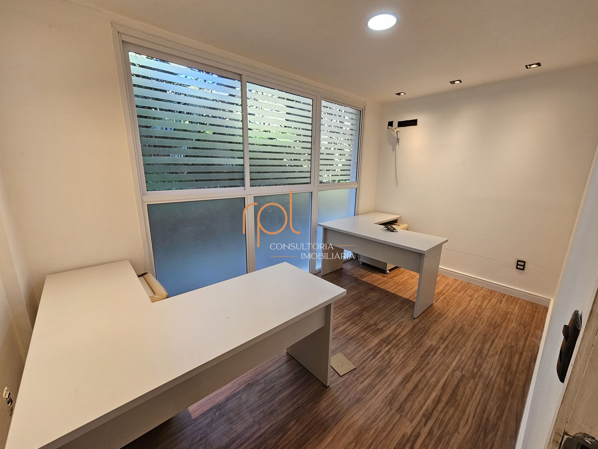 São 2 salas interligadas, primeiro andar, com divisória para sala de reunião e copa, 2 banheiros e 2 vagas. Em excelente condomínio comercial com muito verde, auditório, espaço zen, cafeteria.